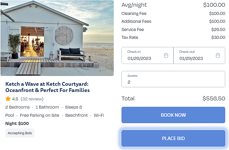 Click “Submit” and see if the host accepts your bid. If your bid is accepted, we will book your stay and send you a confirmation.